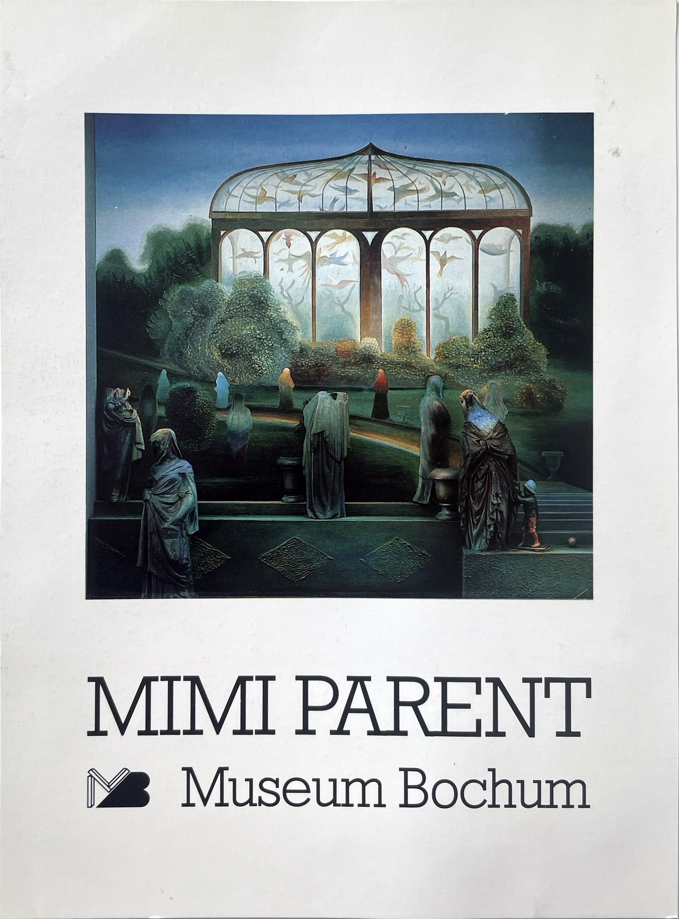 Die in Montréal geborene franko-kanadische Malerin, Zeichnerin und Objektkünstlerin Mimi Parent, die seit 1948 mit ihrem Lebensgefährten, dem Künstler Jean Benoît in Paris lebte, stellte nur selten aus. Das lag »in der […] Abneigung der Malerin [begründet], sich auf die oft abstoßenden und entwürdigenden Mechanismen des bürgerlichen Kunstbetriebs einzulassen« (H. Becker). Er hatte die Künstlerin anlässlich der Imagination-Ausstellung kennengelernt und mit ihr bis zu ihrem Tod eine intensive Brieffreundschaft gepflegt. So konnte er sie zu ihrer ersten Einzelausstellung auf deutschem Boden in der Außenstelle des Bochumer Museums im idyllischen Haus Kemnade überreden, auf der sie mit 58 Arbeiten vertreten war. Als Ko-Organisator war Becker mit Übersetzungen von José Pierre (1927–1999), André Breton ↓, Milan Nápravník ↓ und Annie Le Brun im dünnen Ausstellungskatalog (18 Abb., teilw. schwarz-weiß) vertreten. 2001 war sie Preisträgerin der Woldemar-Winkler-Stiftung ↓ in Gütersloh. Becker war für die Konzeption und die Texte des kleinen Katalogs verantwortlich.