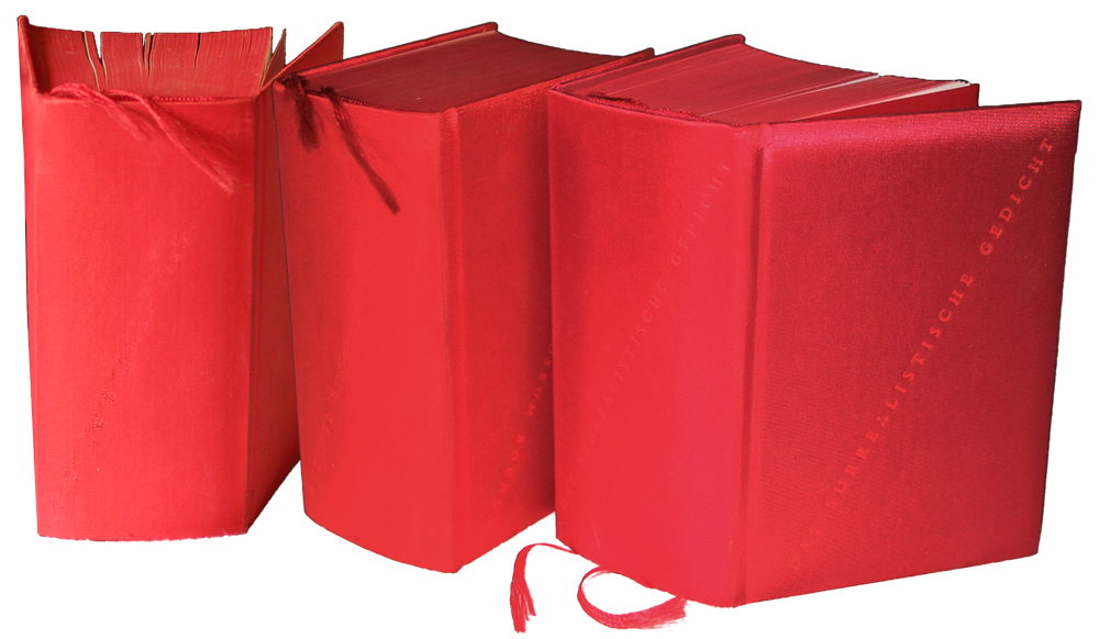 Der zuletzt über 1.800 Seiten umfassende nur 12 mal 9 mal 6 Zentimeter große Band (Becker: »Kleiner Ziegelstein«) wurde seine kommerziell erfolgreichste Veröffentlichung. Das in rotglänzendem Leinen gebundene, mit rotem Farbschnitt, Vorsatzpapier und zwei Lesebändchen versehene Buch erfuhr im Jahr 2000 eine um 40 Autoren und Autorinnen erweiterte 2. Auflage, im Jahr darauf eine weitere überarbeitete Fassung, 2005 eine Vierte. Die Anthologie enthält neben Gedichten von Breton ↑, Carrington ↑, Péret ↑, Prévert ↑ und den Rosemonts ↑ über 200 weitere von Autoren aus Europa, dem amerikanischen Kontinent sowie Japan. Jeder Beteiligte wird mit einer Kurzbiografie eingeführt, ergänzt durch individuelle Bibliografien am Buchende.