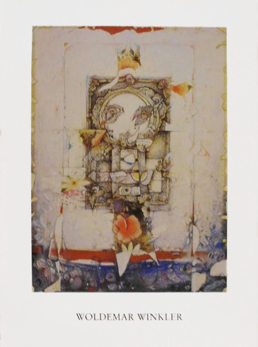 1987 schreibt er für den Katalog seiner Ausstellung in der Städtischen Galerie Albstadt in Baden-Württemberg mehrere Texte. Vier Jahre später publizierte er gemeinsam mit dem Berliner Maler und Grafiker Frieder Schellhase die umfangreichen Monografie zur Winkler-Ausstellung im Kunstmuseum Bochum ↑, die bei Nautilus ↓ erschien (s.a. Dies & das). Er verfasste hierfür den Text Zur Stellung von Woldemar Winklers Werk. 1991 stellt Winkler in der Galerie Alphonse Chave in Vence, Département Alpes-Maritimes in Frankreich, Zeichnungen, Collagen und Gemälde aus. Zum Katalog steuert Becker u.a. den Text Woldemar Winkler, à mi-chemin entre romantiques allemands et surréalistes (Woldemar Winkler, auf halbem Weg zwischen deutschen Romantikern und Surrealisten) bei. 1998 erscheint in limitierter Auflage in der Berliner Edition Maldoror ↓ das Künstlerbuch Die Leidenschaft ist die Vernunft mit Grafiken Winklers und Texten surrealistischer Künstlerinnen, die Becker teilweise ins Deutsche übersetzt. Winkler stirbt 2004 in Gütersloh in Westfalen, wo er seit 1949 lebte, mit 102 Jahren. Sein umfangreiches Werk ist seit 1994 Bestandteil der Woldemar-Winkler-Stiftung der Sparkasse Gütersloh. Seit 1997 vergibt sie alle zwei Jahre den mit 5.000 € dotierten Woldemar-Winkler-Preis. In den Jahren 1997, 1999 und 2001 war Becker neben Woldemar Winkler u.a. Mitglied der Jury, 2007 gemeinsam mit dessen Sohn Christoph Winkler (*1953, s.a. Antlogonis infekt).