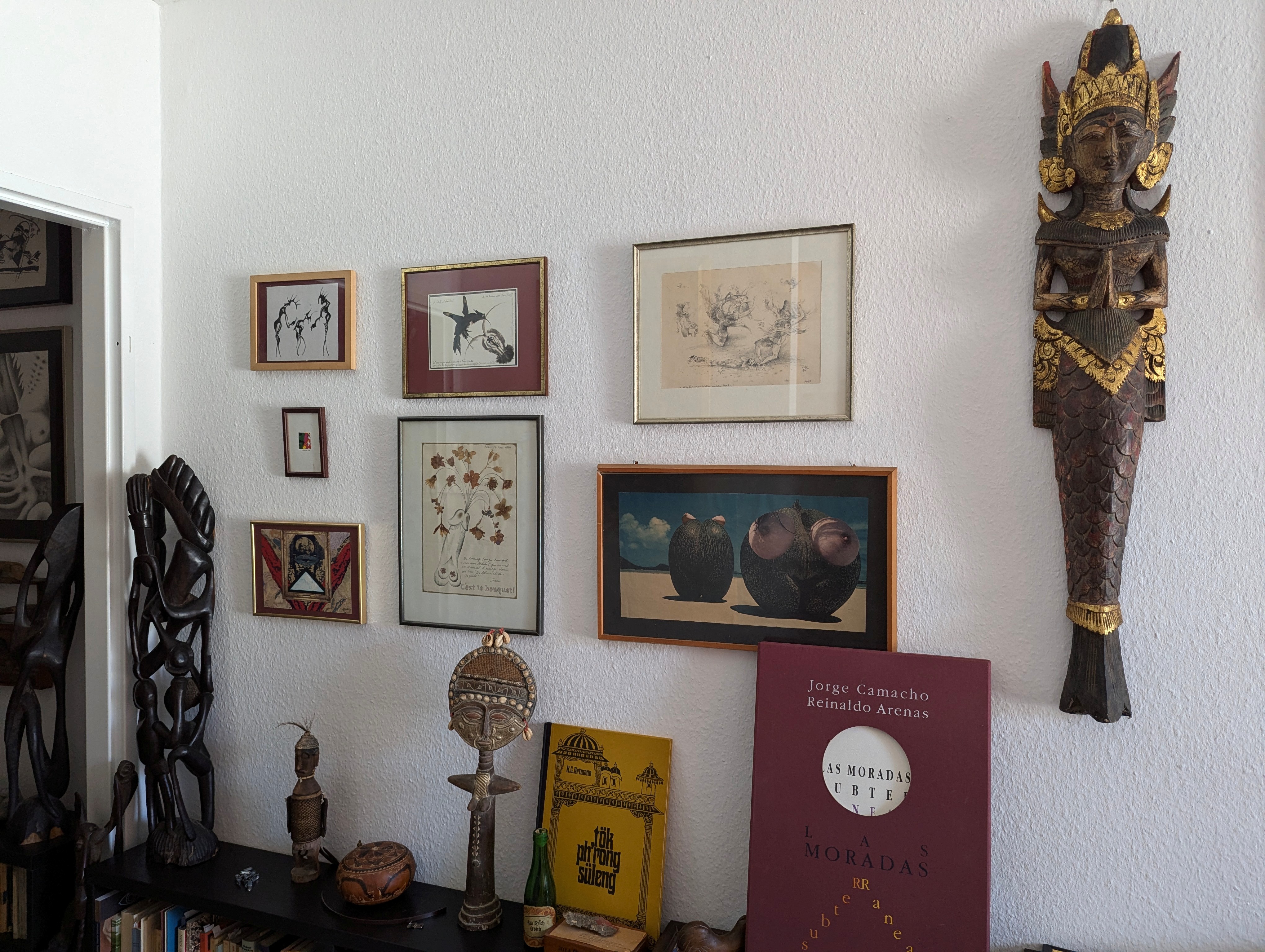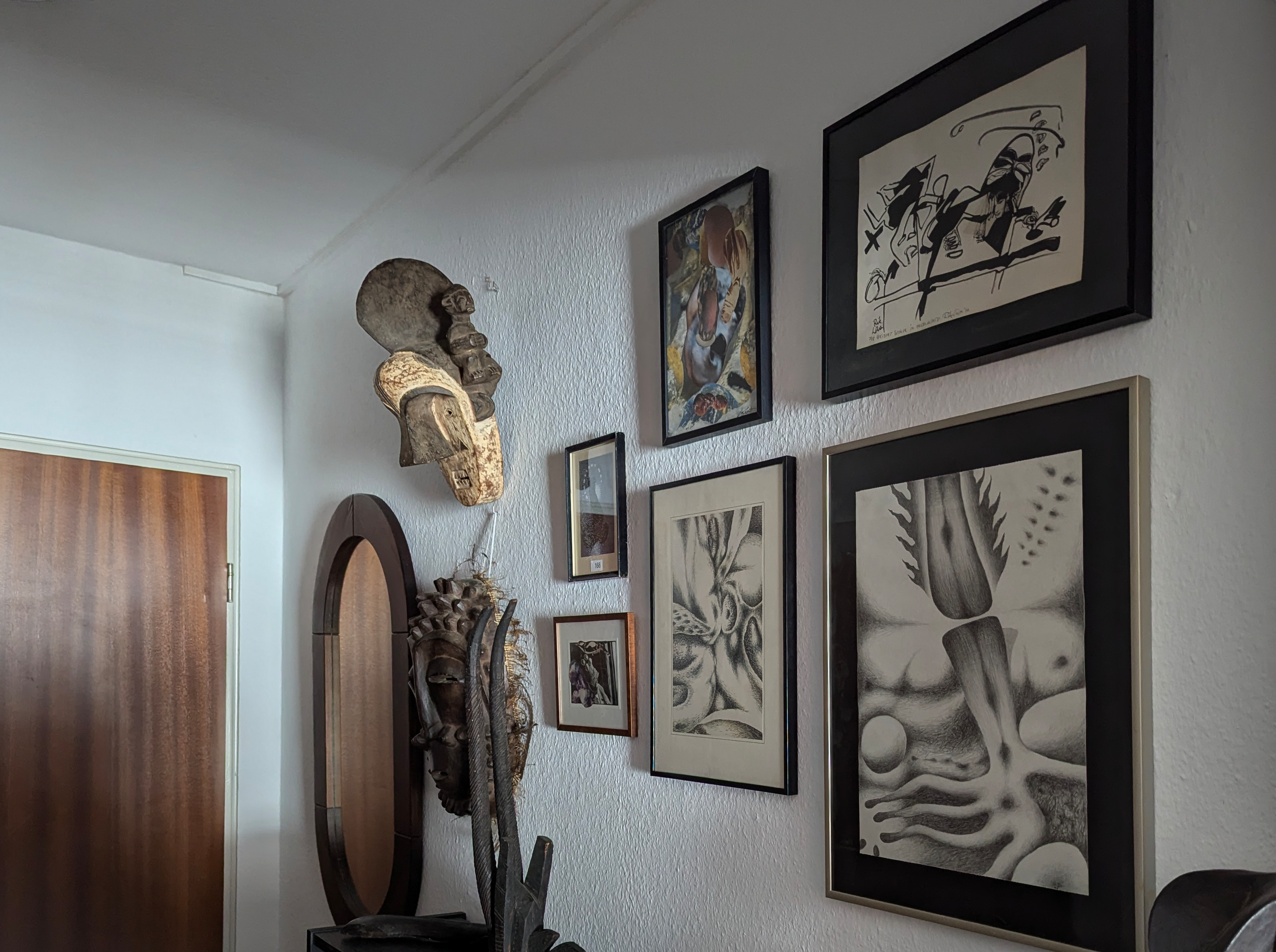 Nicht nur von seinen Reisen brachte Heribert Becker zahlreiche Gemälde, Grafiken, Skulpturen sowie eine Vielzahl von Büchern und Bildbänden mit in seine Kölner Wohnung in der Euskirchener Straße. Hier bildeten sie über die Jahre eine kleine und feine Kunstsammlung und umfangreiche Bibliothek. Auch eine Vielzahl ethnologischer Kunstobjekte aus Südamerika, Ozeanien und Afrika waren Teil seiner Privatgalerie (u.a. Makonde-Skulpturen, Akuaba-Puppen und diverse Masken). Neben Werken von Mimi Parent ↑, Jean Benoît, Woldemar Winkler ↓, Egon Günter (*1953) ↓, Karina Raeck (*1938), Rik Lina (*1942) ↓, Frieder Schellhase und Louis Pons (1927–2021) waren auch Arbeiten vieler südamerikanischer Künstler und Tschechen (Milan Nápravník ↓, Ladislav Novak, Alois Nožicka, Jan Švankmajer und Mikuláš Medek) Bestandteil der Sammlung. Viele der Künstler und Künstlerinnen lernte er im Rahmen seiner Bochumer Ausstellungen kennen.